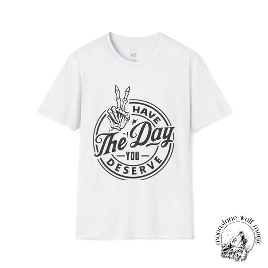 'Have The Day You Deserve' Unisex Softstyle T-Shirt - Positive Vibes Apparel