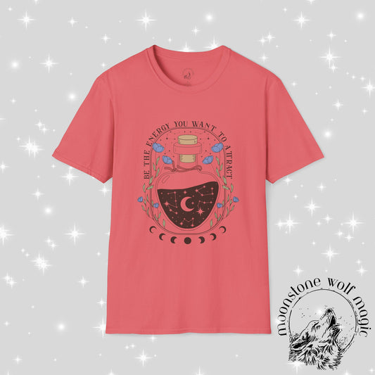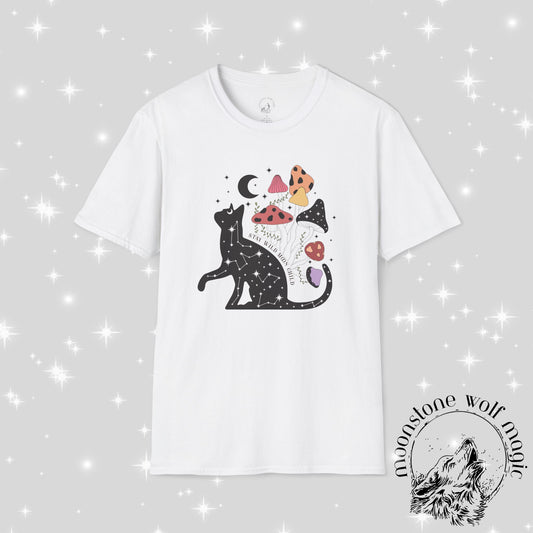 Cosmic Cat and Mushrooms Unisex Softstyle T-Shirt - Magical Aesthetic Tee