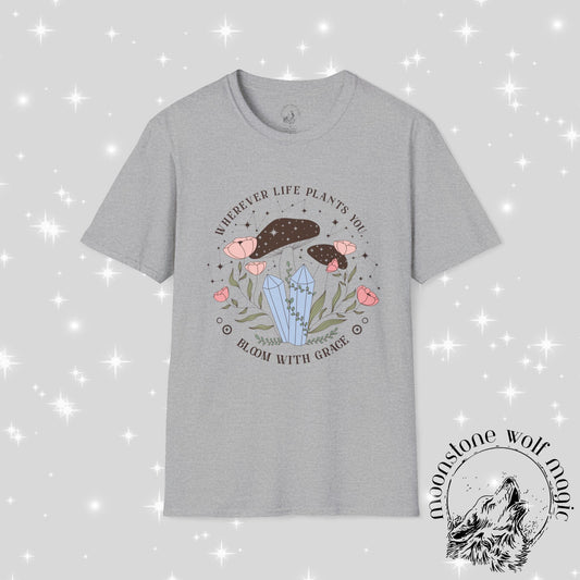 Bloom with Grace Unisex Softstyle T-Shirt - Earthy Floral Design