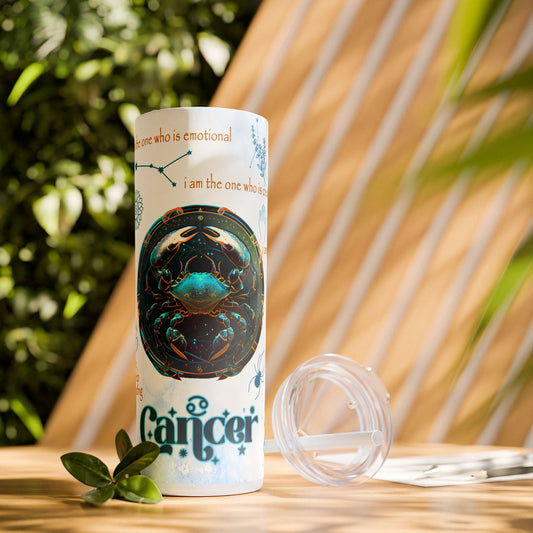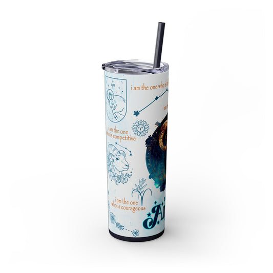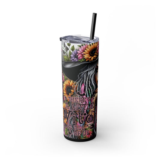 Boho Witchy Skinny Tumbler with Straw - 20oz Floral Skull Design