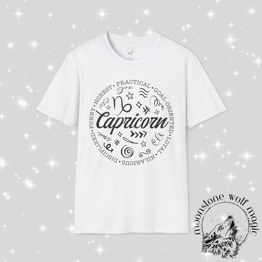 Capricorn Astrology Unisex Softstyle T-Shirt – Honest, Practical, Goal-Oriented Design