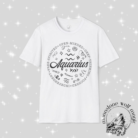 Aquarius Zodiac Unisex Softstyle T-Shirt - Open-Minded and Free-Spirited Design