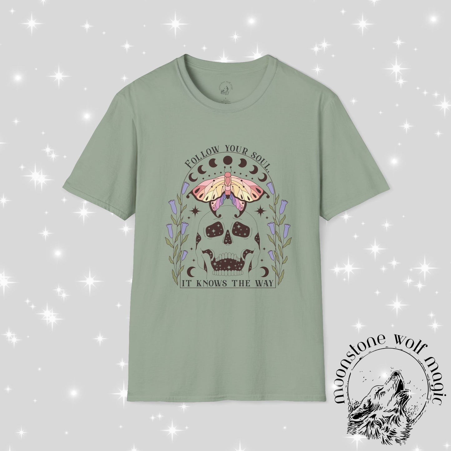 Follow Your Soul Unisex Softstyle T-Shirt - Spiritual Skull Design