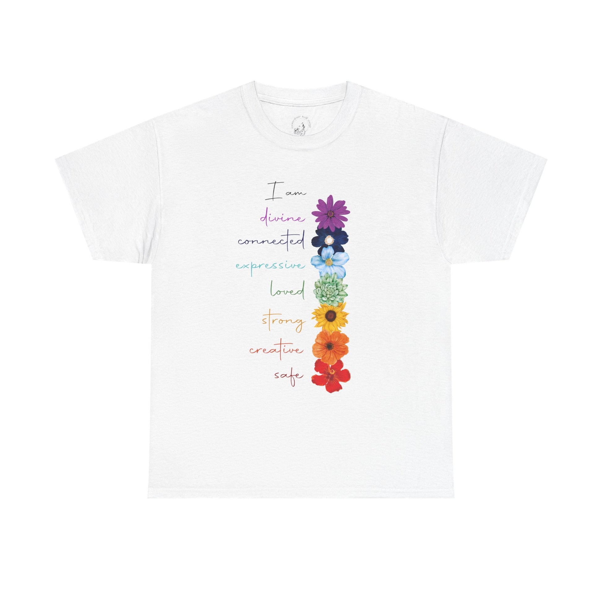 Inspirational Floral Chakra Unisex Heavy Cotton Tee - Express Yourself with Love and Strength